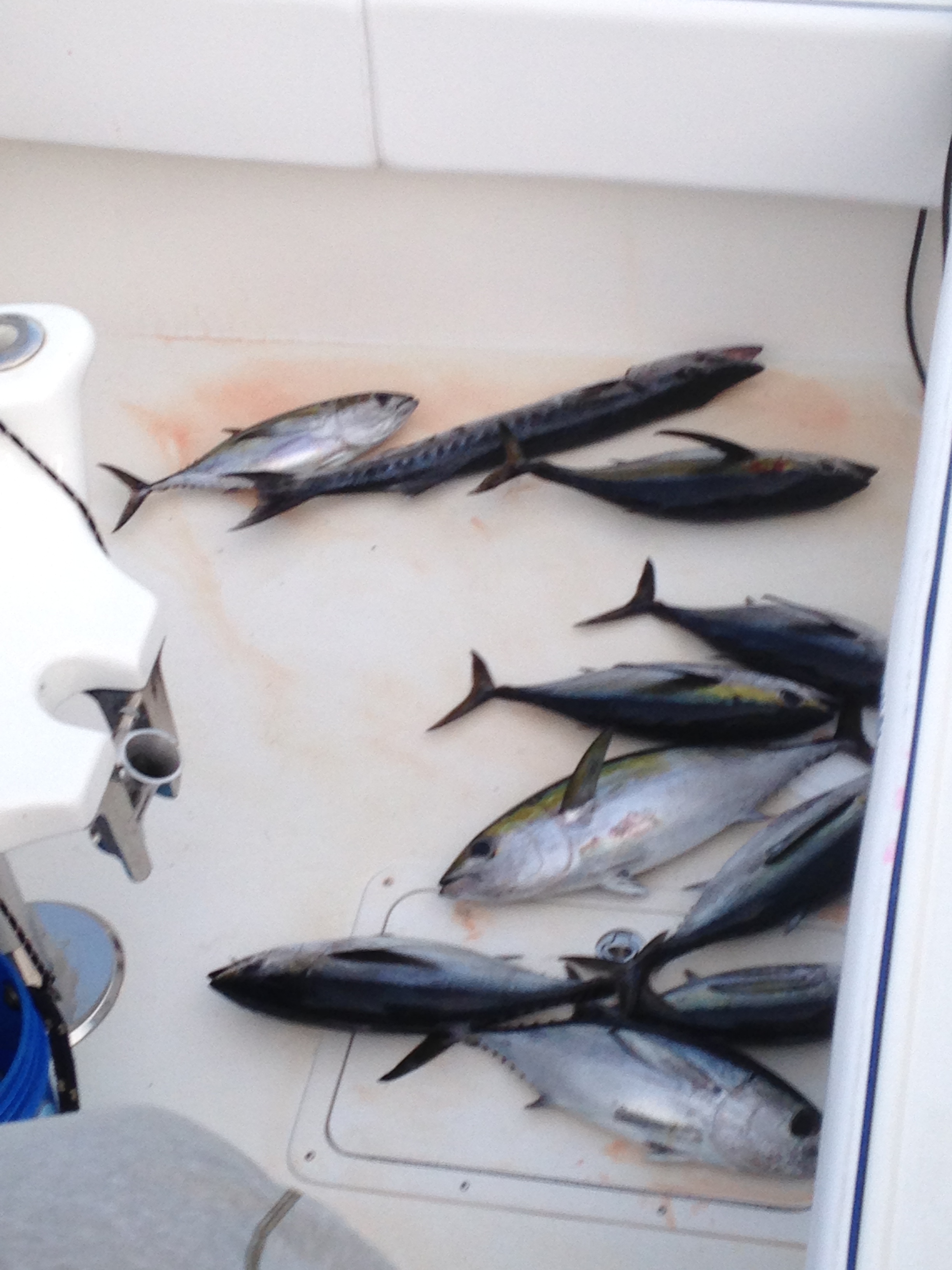 After our kayak in the morning, Dan also got to go fishing with the guys from the group we went to St. John with last weekend. They chartered a boat out of Red Hook and went fishing south of St. John. It was a fun and successful trip! Dan caught lots of Blackfin Tuna, and even had a shark on the line, but it was too strong to bring into the boat.