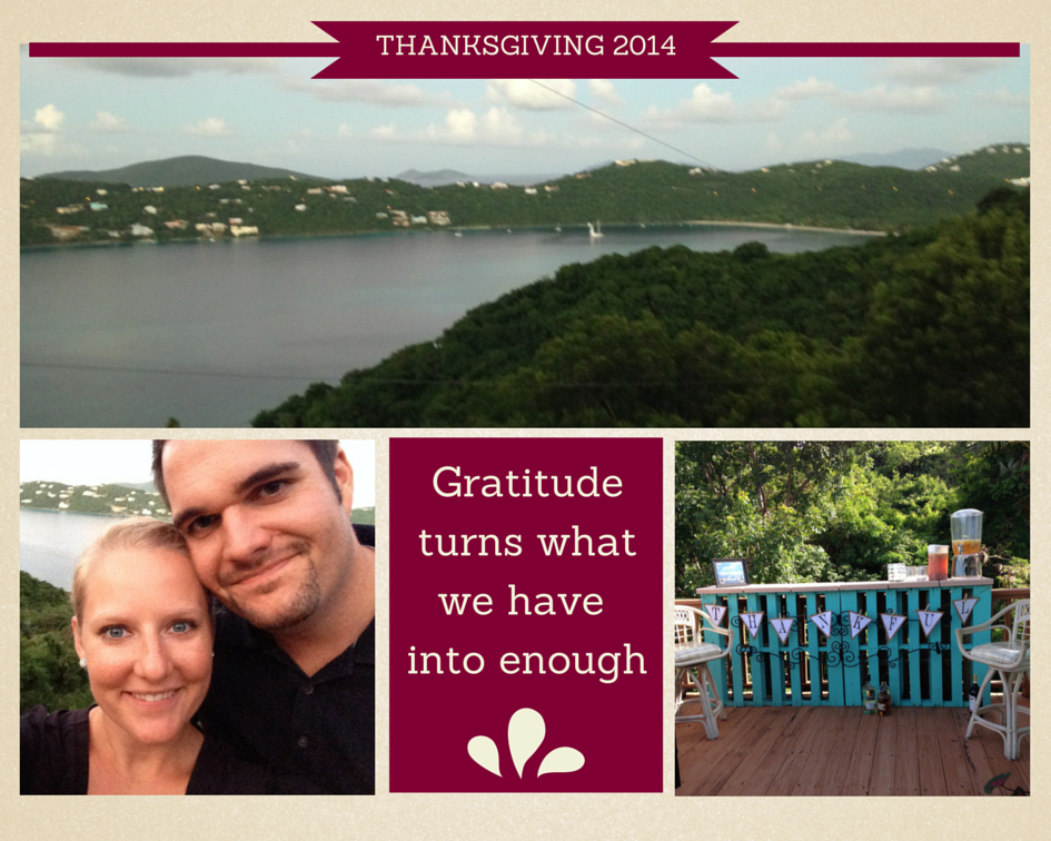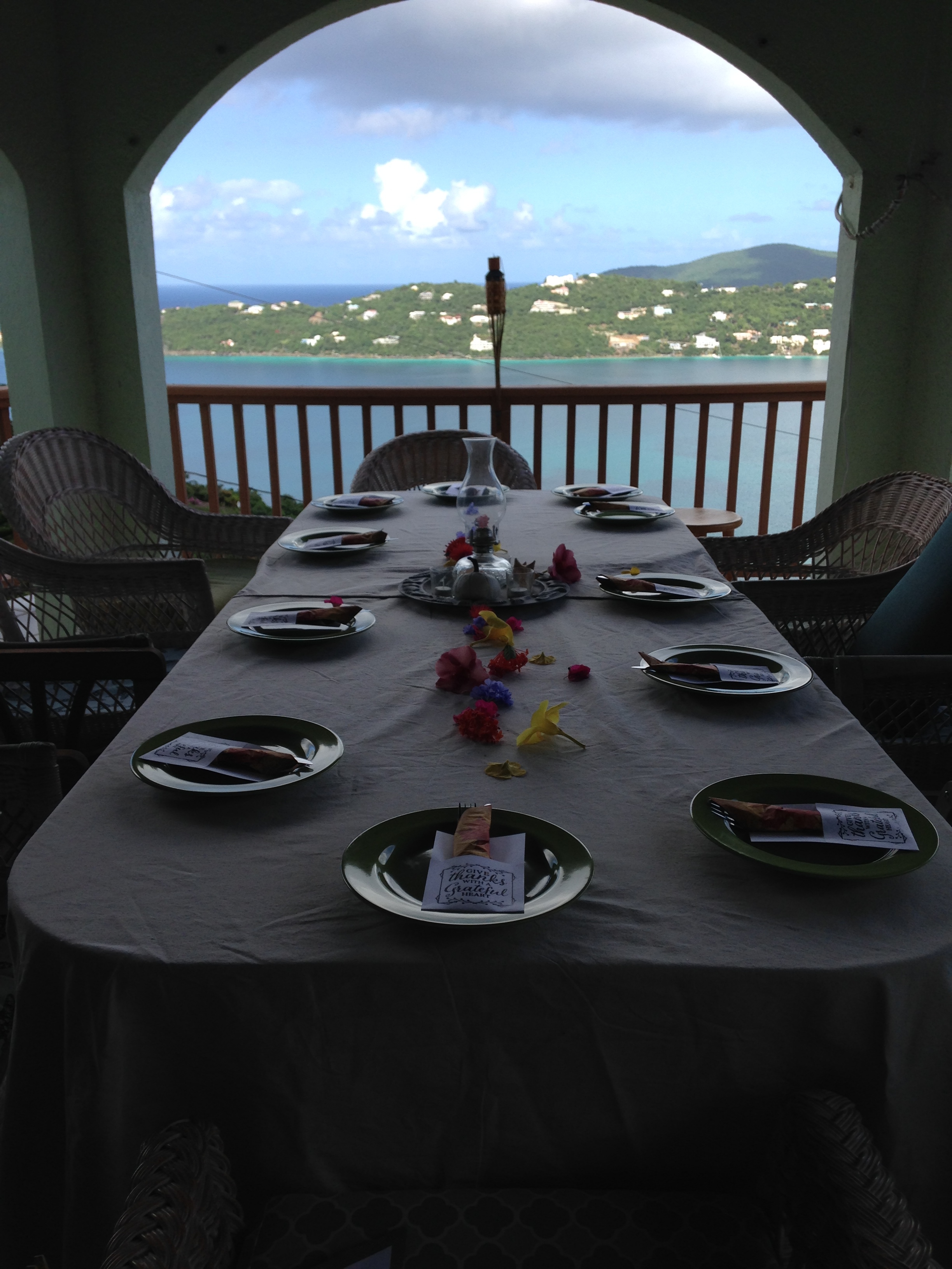 The holidays have come to the islands! It definitely doesn’t feel like it, but we’re enjoying the little bits of holiday cheer that pop up around St. Thomas. We were lucky to be invited to Thanksgiving at A & M’s house, with their family visiting from the Midwest, plus some other friends and neighbors. The food was amazing, we had fantastic hosts, and you really can’t beat the view for Thanksgiving dinner.