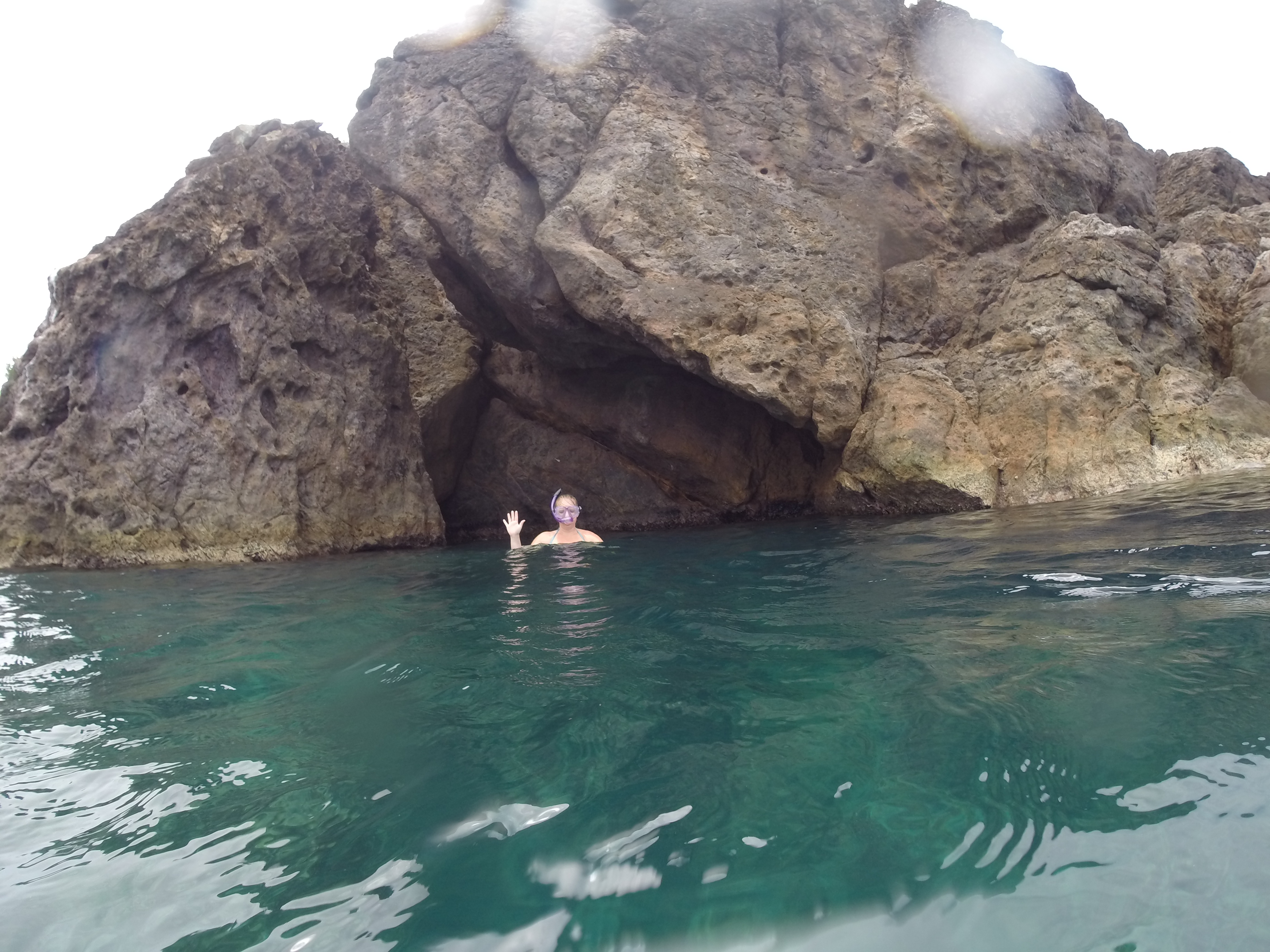 After customs on Jost Van Dyke, we headed out to Guana Island for some snorkeling. The water was kind of churned up, but we got to explore a little cave and see some cool fish. Next we were off to Marina Cay for lunch. Near Great Camanoe and Scrub Island, this little eight-acre cay is home to a Pusser’s Rum store and restaurant, as well as some small vacation villas. Pusser’s Rum has been a British Naval tradition since 1655, and is well-known throughout the British Virgin Islands.