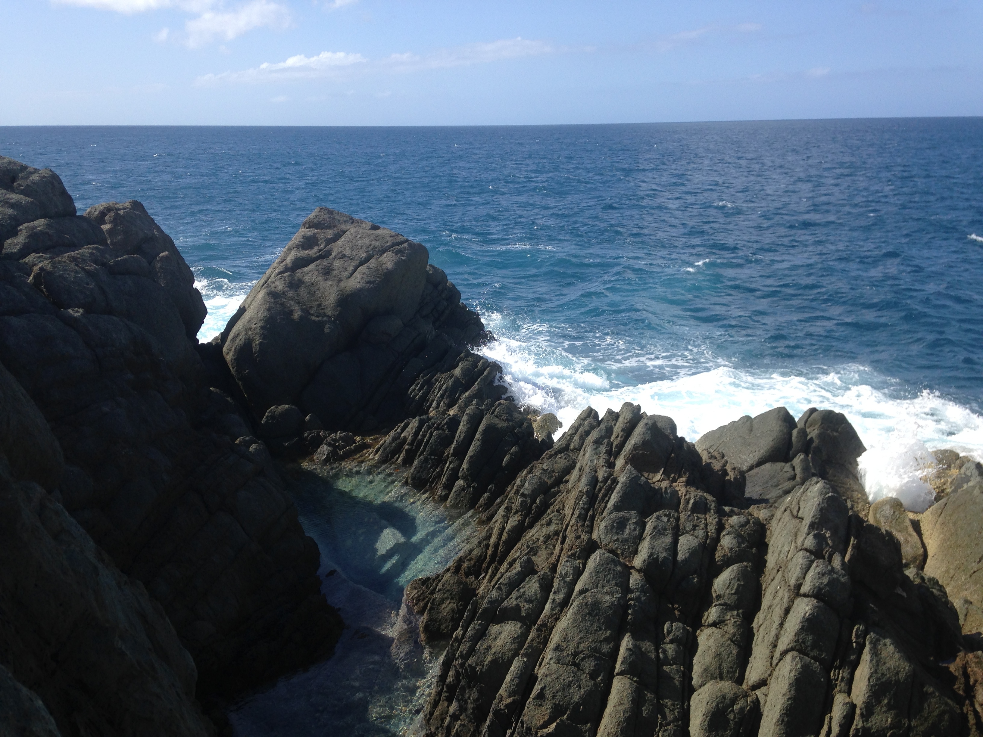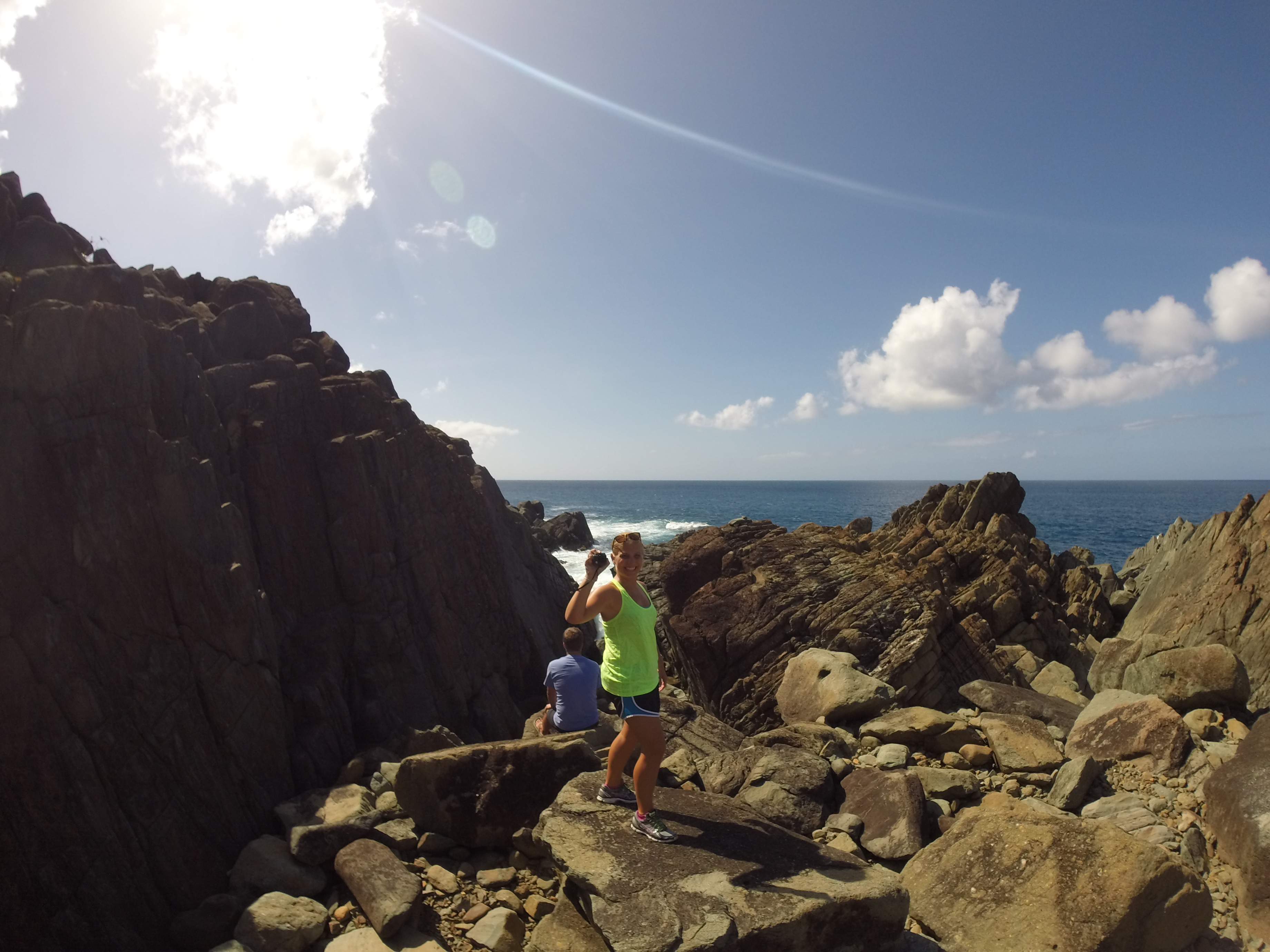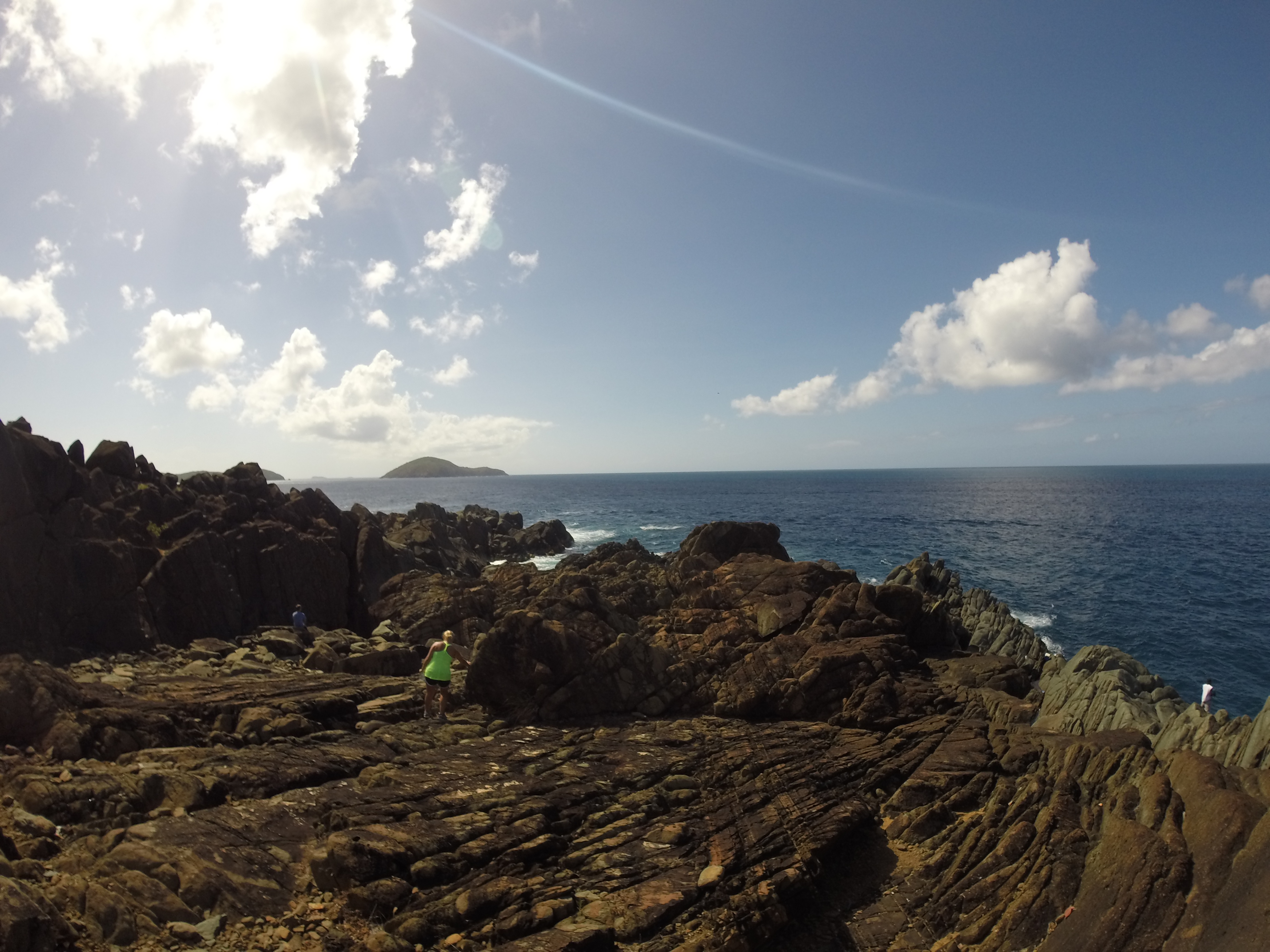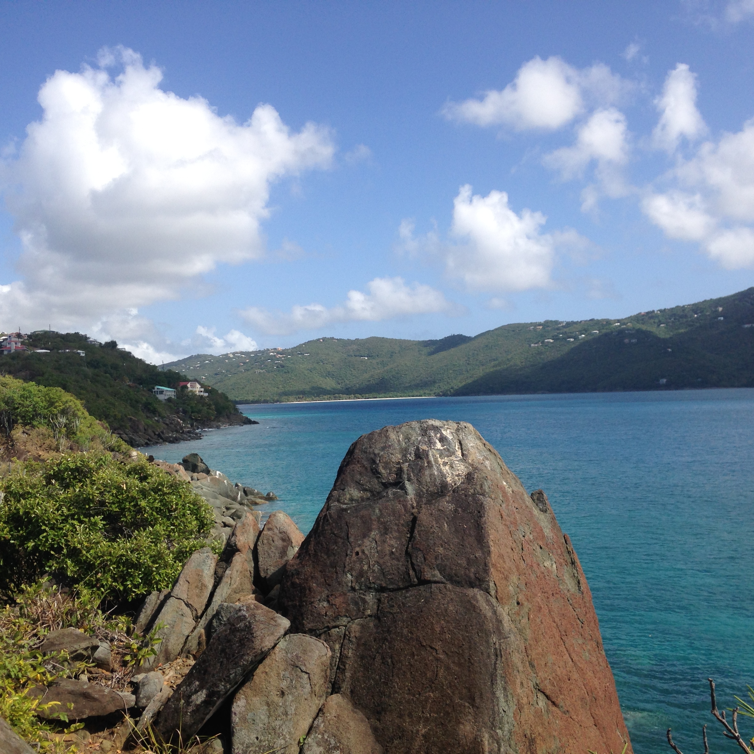 We’ve seen the view overlooking Magen’s Bay hundreds of times, but had never ventured out onto Peterborg Point. This long stretch of land is an arm of St. Thomas reaching out into the Atlantic Ocean, creating the huge and protected Magen’s Bay. We drove out onto the end of the point with A & M to do a little “hiking.” We all heard conflicting stories of how easy or hard the “hike” would be. It was really simple to drive to a little clearing and then walk around on the point. We spotted a fisherman on some of the rocks, but have no idea how he got there! The view is great and we had a blast seeing something new!