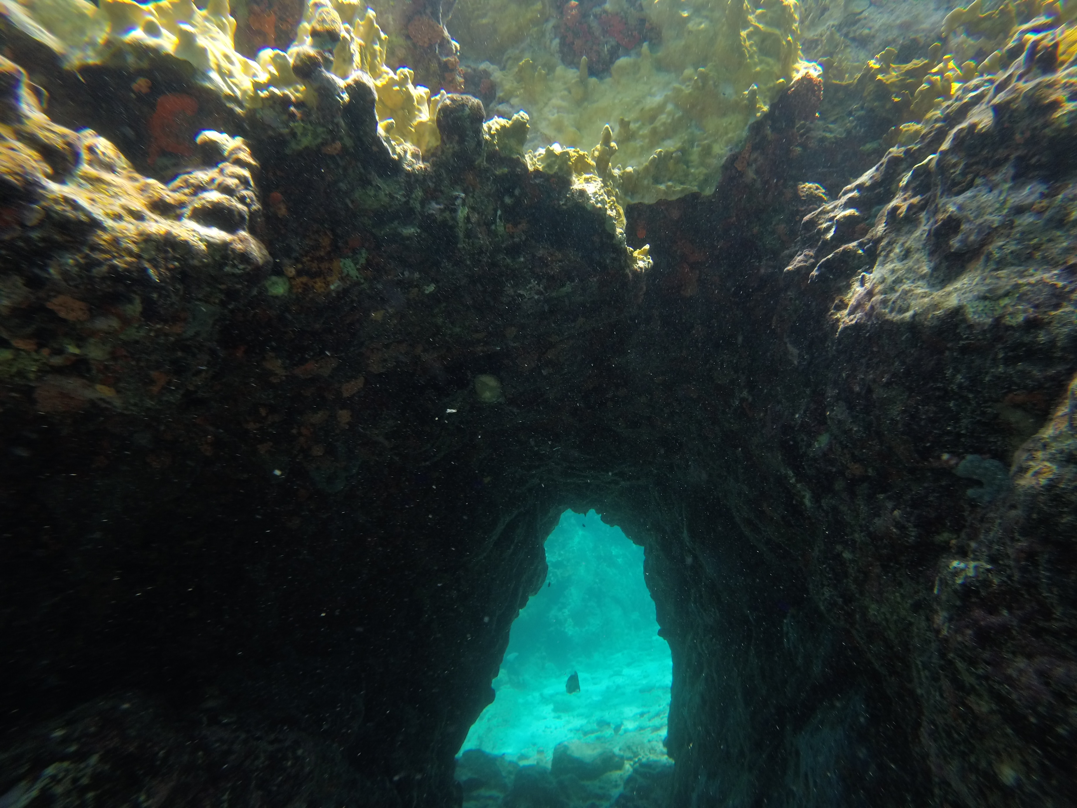 There is a short cave to swim through at the Indians that this Iowan nearly chickened out of experiencing. I watched Dan go through, the Michiganders sail through and it was finally my turn. Sucking in a big breath, down I went. I was focusing so much on kicking hard and not whacking my elbow or knee against a rock that I wasn’t paying much attention to the view. At the last minute, I gave one last kick and my heel kissed the mouth of the cave, successfully prying my foot out of my fin. I felt it slip into the abyss and I said SEE YA!! Once I got to the surface, I told the guys what had happened and they decided to venture back through the cave to see if they could find the fin. After two trips through the narrow opening and still no fin in sight, A has a brilliant thought – the fin has floated to the top of the cave. M went through again and emerged once again, fin in hand. Day saved!
