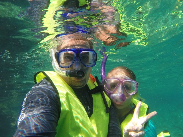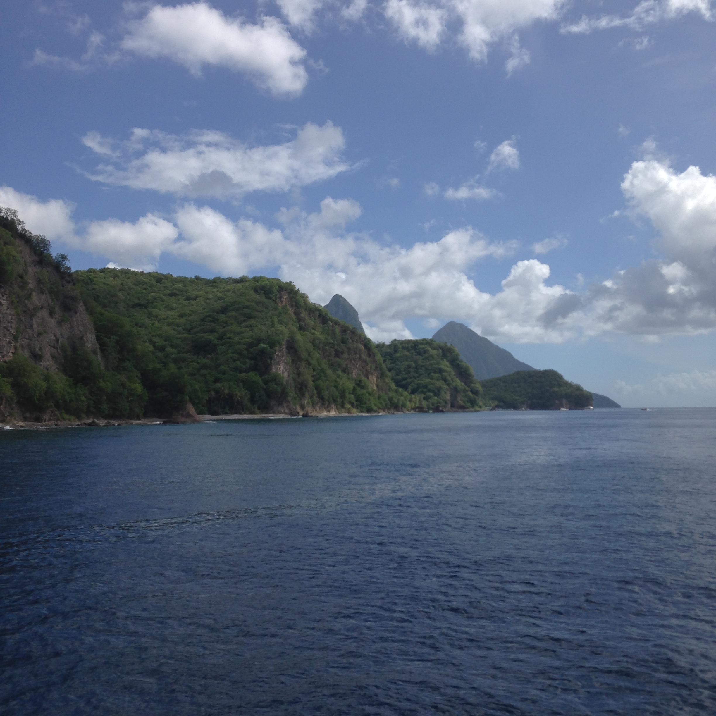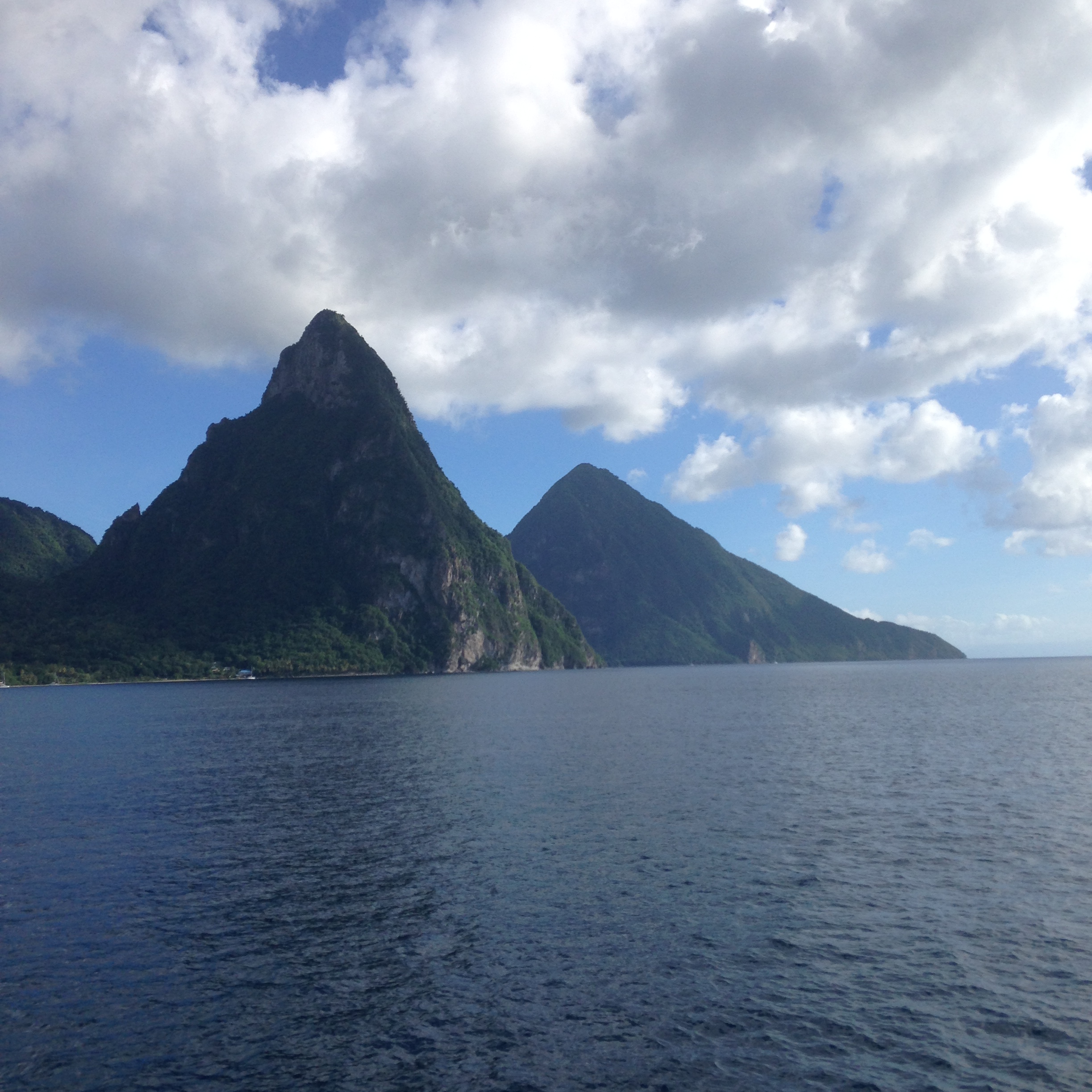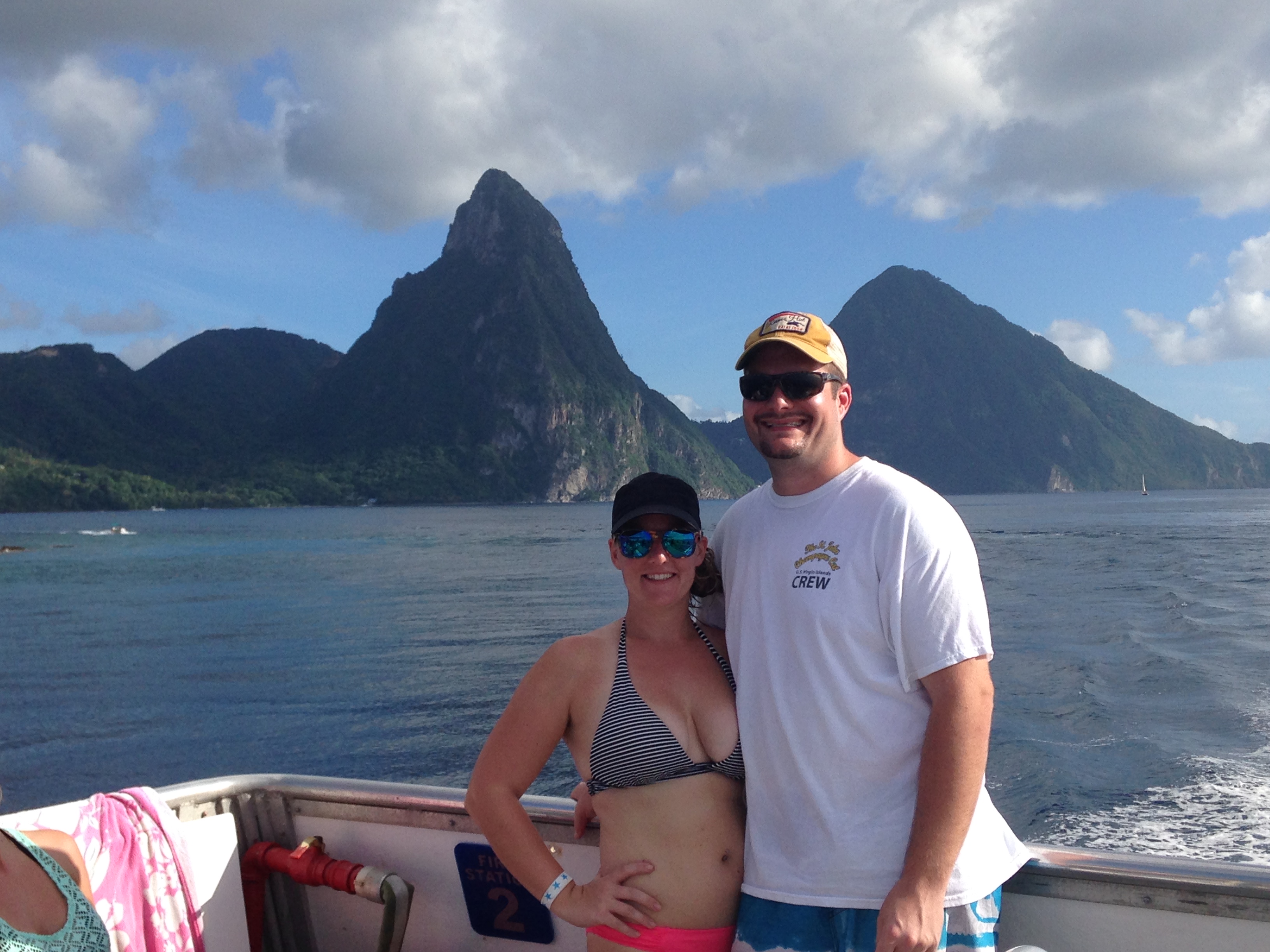 Our next port was St. Lucia. This island has been on my bucket list for a long time; seeing photos of the famous Pitons had given me St. Lucia fever and I couldn’t wait to visit. The first thing we noticed about St. Lucia was how clean the dock area was. It was impeccably kept – not one piece of trash. Now, some may say that it was only because we were in a tourist area, but after seeing how well some other ports are kept up, St. Lucia definitely wins for cleanliness. Secondly, everyone was friendly. We have gotten used to a little bit of rudeness here on St. Thomas, chalking it up to just part of its quirkiness. St. Lucians were gracious and glad to have people there to spend money in the shops and restaurants. We took a coastal cruise to the southern part of the island near the Soufriere volcano. The Pitons rise in the distance and simply take your breath away. We snorkeled in the bay between the two peaks and had a n awesome day! We then found a cool bar near the pier called Rum Therapy and I made Daniel buy a shirt since he wouldn’t get the “official”-looking polo that said “Rum Therapist” on it. I thought it was a funny play on his profession in the Caribbean, but maybe not. In the end, St. Lucia was stunning and we would come back to visit in a heartbeat.
