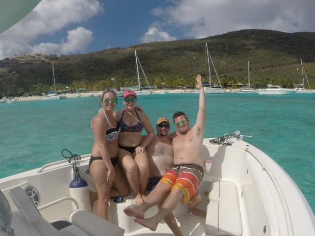 Friday was a BVI boat trip with One Love Charters. Captain Joe was SO great and we had an awesome day on the water even though it was just a LITTLE windy. Jost Van Dyke is my favorite island and I think I’ve converted Bill and Lauren as well. We stopped at the bubbly pool and White Bay for a Soggy Dollar painkiller. We learned last year that no alcohol is served on Good Friday, but fear not, as true islanders we BOOR (Bring Our Own Rum).