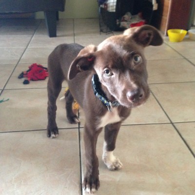 DeeDee (or dumpster dog as Chris called her) the foster pup. We think she looks like Dobby the Elf from Harry Potter!