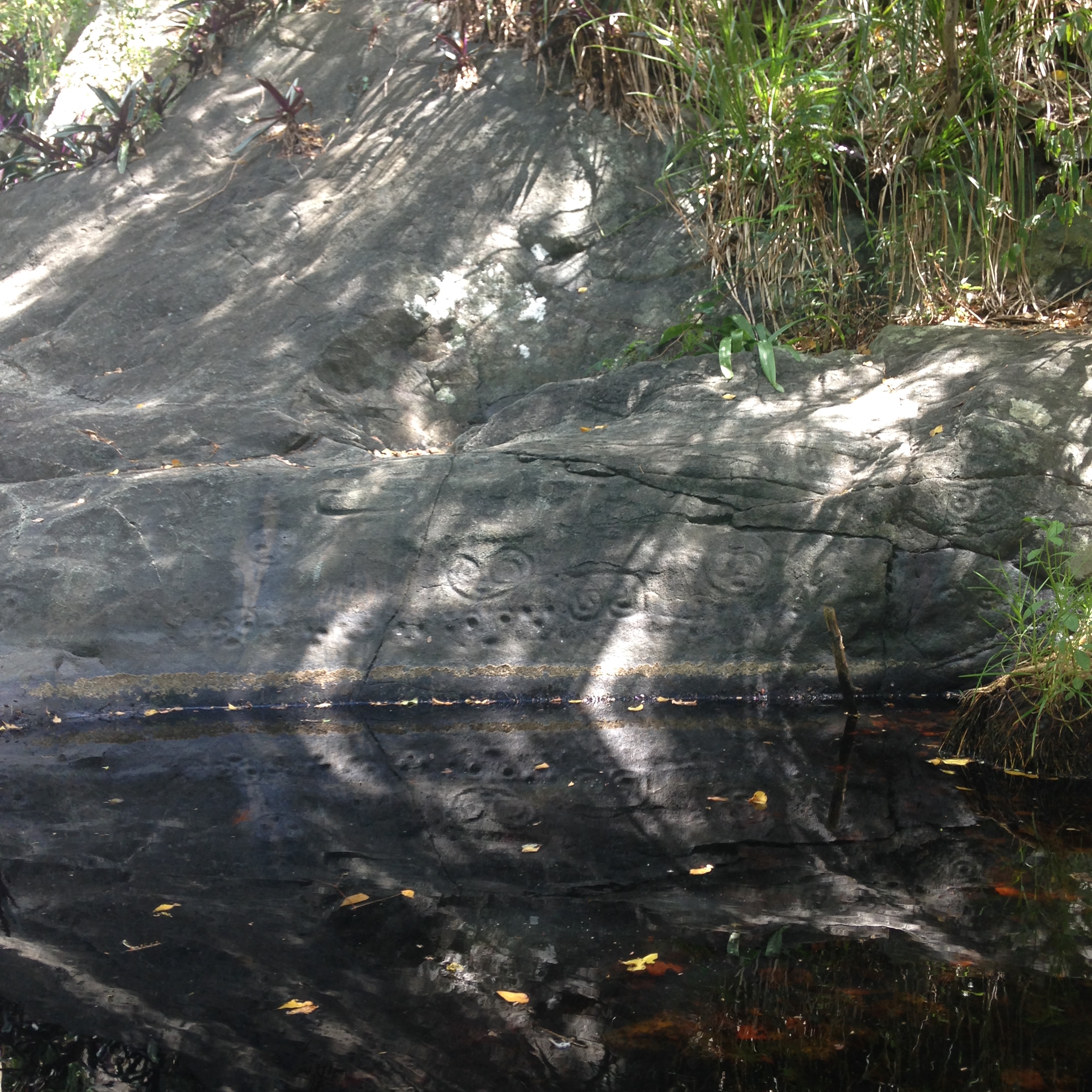 We got up Saturday morning to hike the Reef Bay Trail, home of the infamous petroglyph carvings. It’s a decent two mile hike down to the little offshoot of a trail that leads to these glyphs, and then it’s another mile to the ocean. Then you have to hike all three miles back UP. It was hot, it was humid, we got really sweaty, and it was awesome.